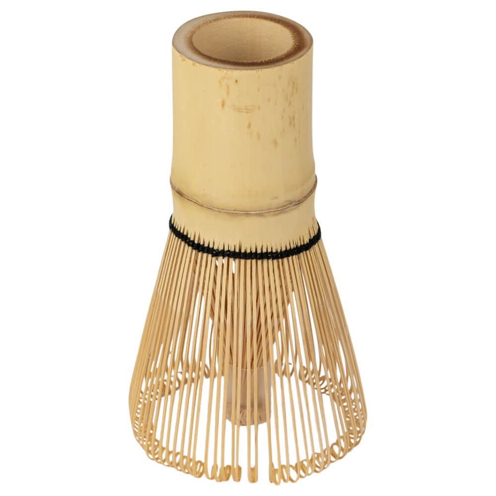 Die Matcha-Schale (Chawan) bietet viel Raum für dynamische Besenbewegungen und ermöglicht durch ihren Ausguss eine mühelose Weiterverarbeitung des Getränks. Der Bambusbesen (Chasen), gefertigt aus einem einzigen Stück hochwertigen Bambus, verfügt über rund 80–85 feine Borsten, die einen dichten, seidigen Schaum erzeugen.